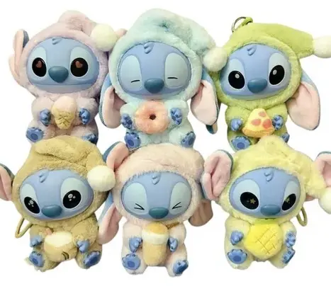 1 modelo sorpresa de Stitch con pijama de colores suaves (rosa, naranja, verde, morado…)